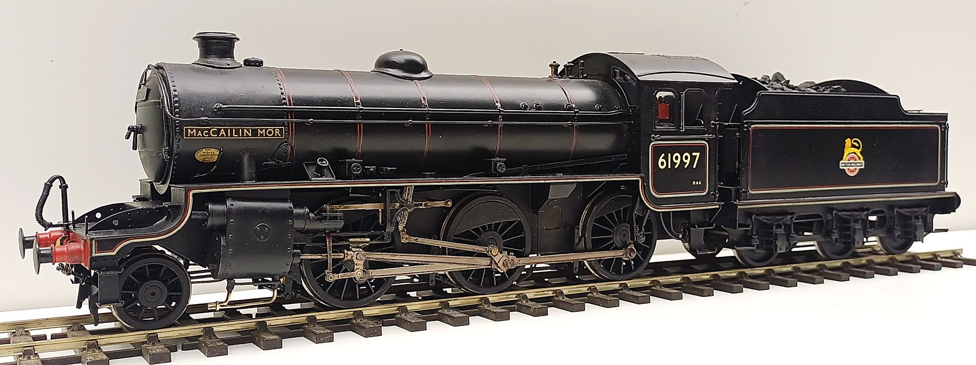 BR (ex LNER) class K1/1 2-6-0 no. 61997 MacCailin Mor, Thompson rebuild of Gresley K4 class. Edward Thompson’s rebuild of Nigel Gresley’s 3 cylinder K4 class no. 3445. Very nicely built by Jon Boot of the Denton Works, using the DMR kit as the basis of construction, but with many scratch details to portray accurately the rebuilt locomotive which was the prototype for the K1 class. With a Slaters GB30R-3M spur drive gearbox and motor unit and Slaters wheels he runs superbly. Very well painted indeed by John Cockcroft. In this condition a rare to see model of this unusual locomotive.