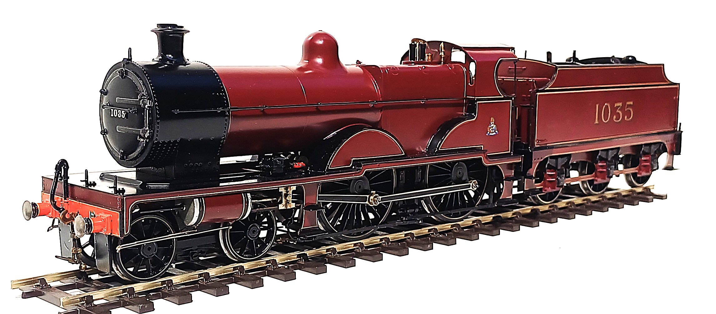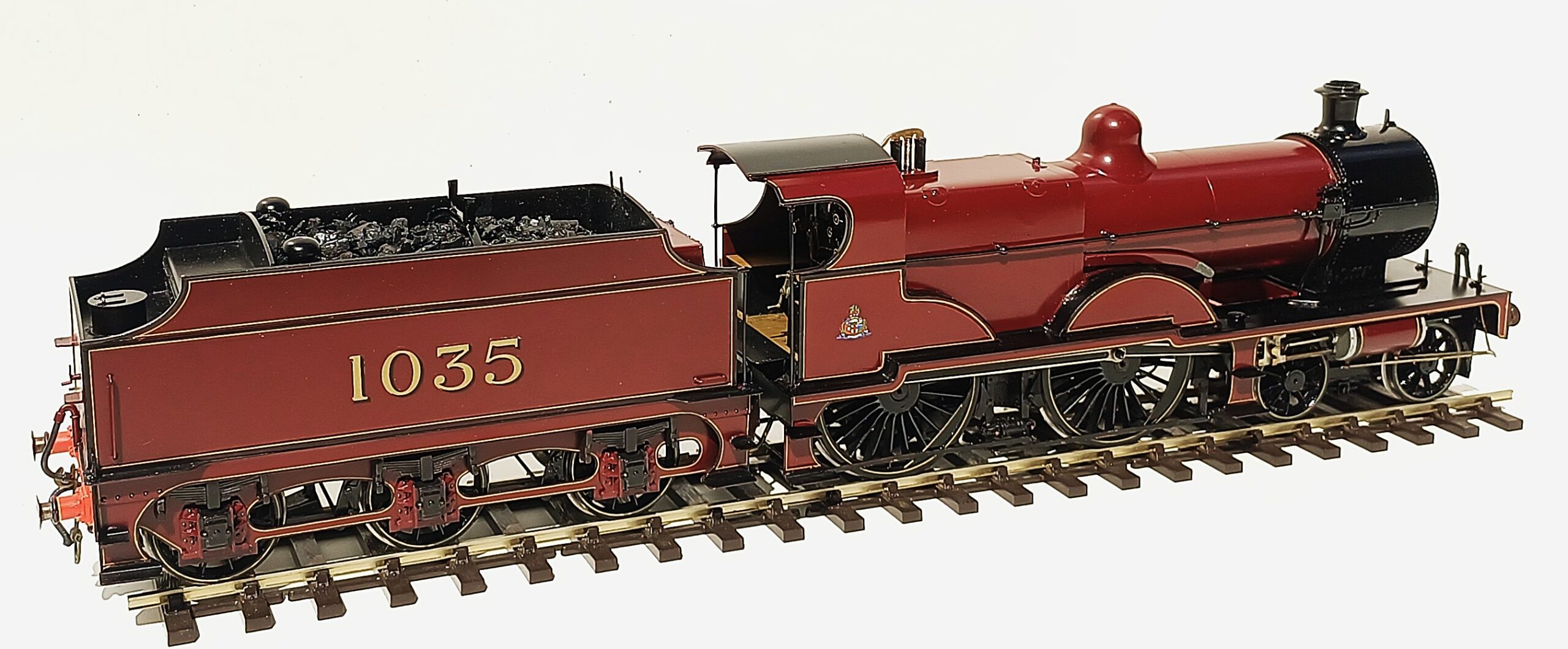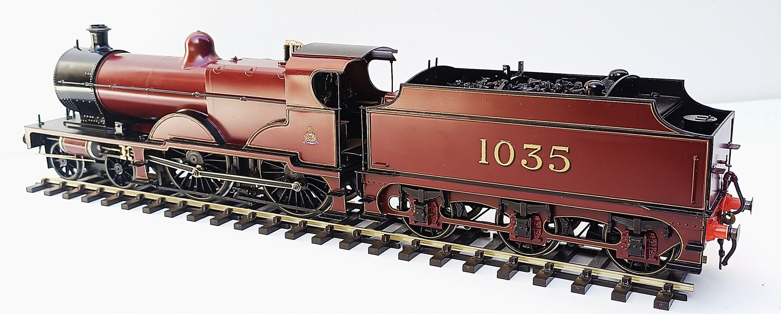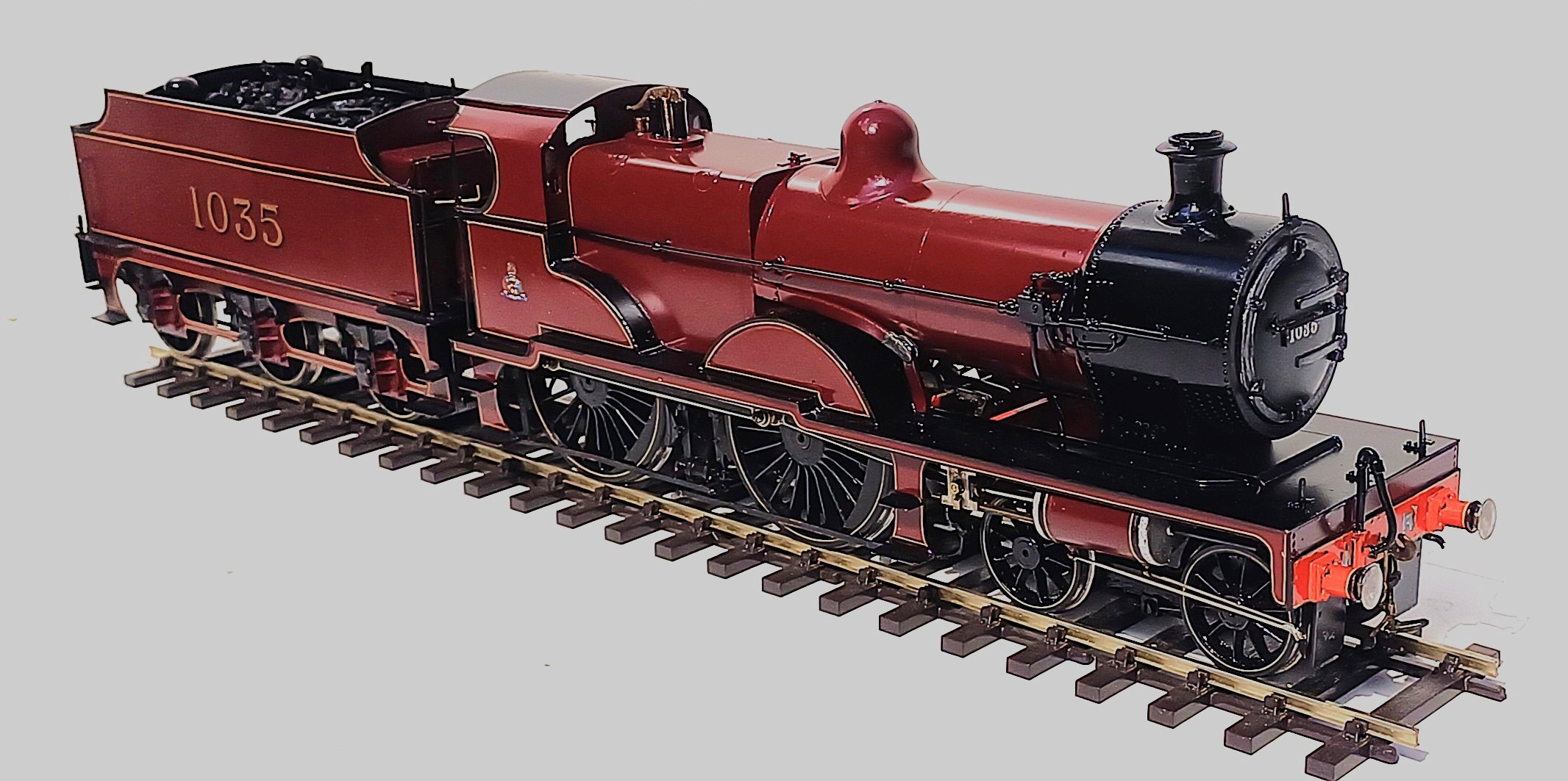 Midland Railway Deeley class 4P 4-4-0 no. 1035. A recent Ebay find. Built from scratch with superb fully working inside motion. No provenance as to the builder but he certainly knew how to make a good model. I had it running at the recent Poachers running session and it performed without fault with my rake of five of Bernard Miller’s Midland bogie coaches. When bought the livery was not as good as the quality of the build. Now stripped of it’s original paint and repainted by Warren Haywood, this impressive model now has the looks taking it to another level of quality.